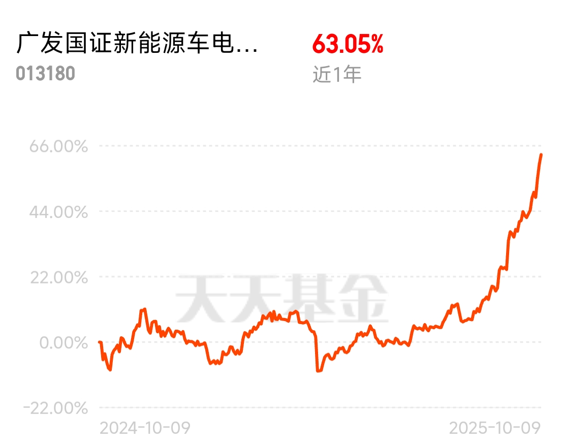 不错啊我重仓的几个里面$广发国证新能源车电池ETF联接C$算是很能涨的了,难怪一