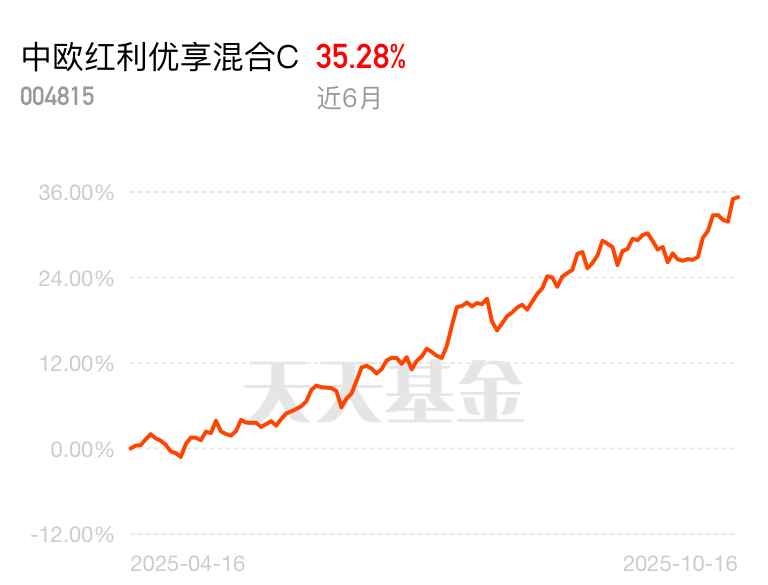 10 月市场不稳,海外也没谱,A 股风格换来换去没主线,红利反倒走俏,涨得比不少科技基金好!中欧红利优享 C能涨还抗跌,蓝小康这种经理少见,5000-10 红包,闲钱做底仓,每天买点!$中欧红利优享混合C$