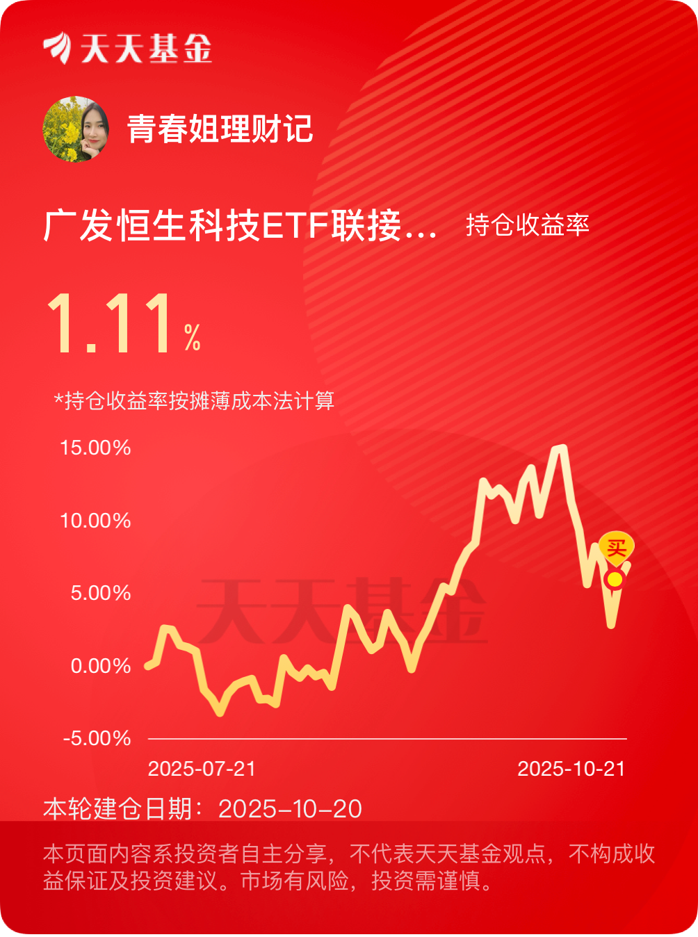 收涨1.11%!昨天加仓$广发恒生科技ETF联接(QDII)C$,今天就吃肉,开