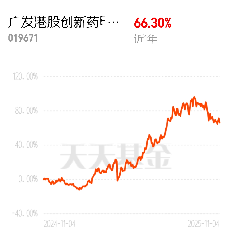 看样子这轮牛市还没过去,创新药估计马上回弹上涨,能1年站上66%涨幅的基都不一般,看好$广发港股创新药ETF联接(QDII)C$
