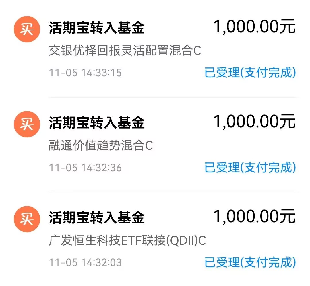 2、$融通价值趋势混合C(OTCFUND|010647)$,买入1000元