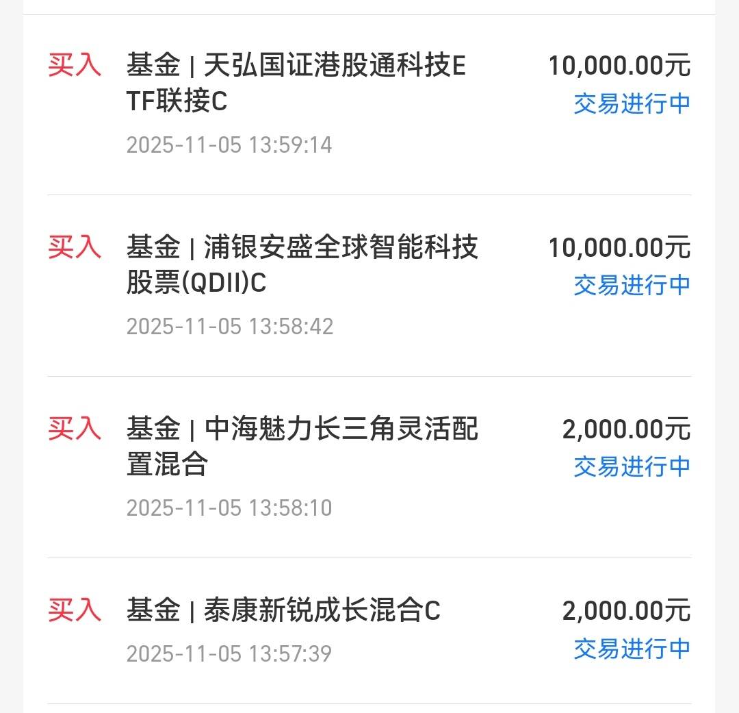 我今天加仓了恒生科技、融通价值趋势、交银优择回报、港股通科技、浦银安盛全球智能科技、中海魅力长三角、泰康新锐成长,其它基金继续持有待涨。