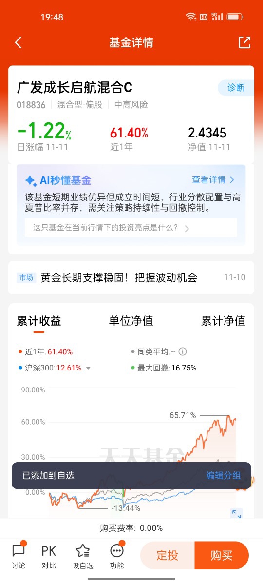 $广发成长启航混合C$
