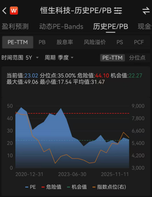 对普通人来说,投资最忌讳的就是“追涨杀跌”。市场调整时恐慌抛售,往往会错过后续的反弹行情。我更愿意把这波震荡看作是市场给的“打折福利”,现在的恒生科技指数PE才23倍,处于2020年以来的35%分位,简单说就是比过去7年里65%的时间都便宜,这种性价比在优质资产里可不常见。