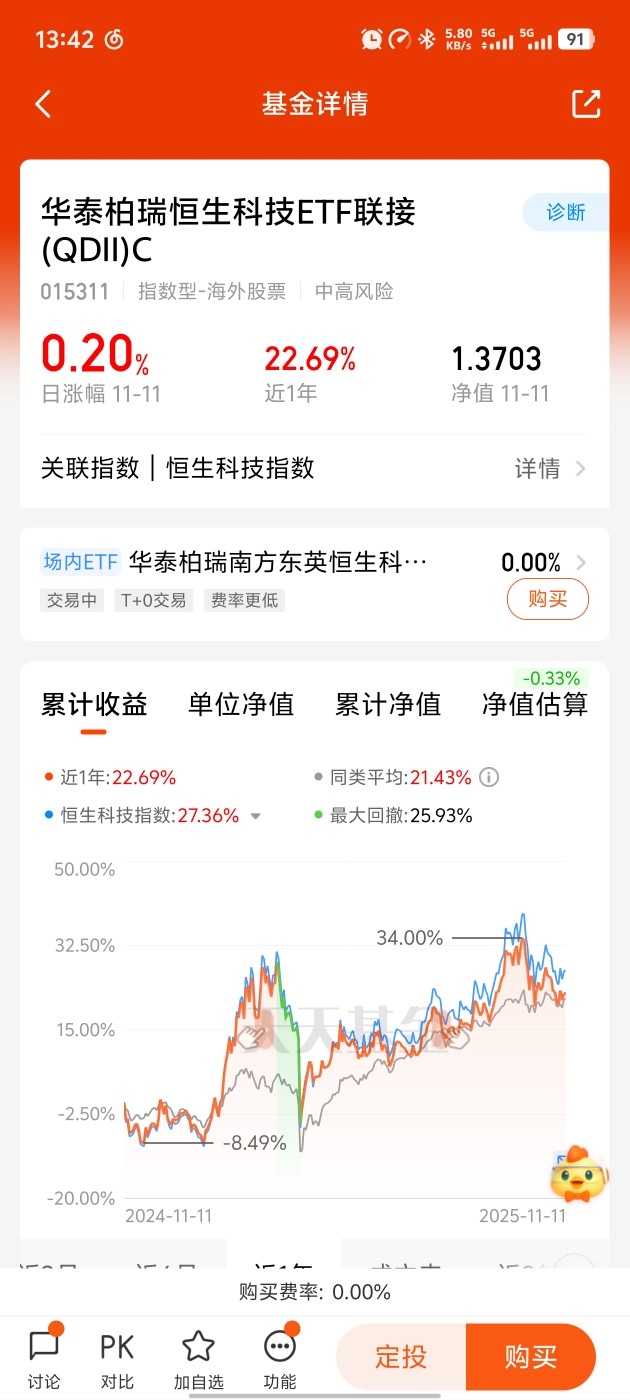 恒生科技今天的表现还算坚挺,虽然早盘出现了回踩,但很快就被拉了回来,最终实现上涨,振幅超过一个点,市场活跃度在慢慢提升。随着美国政府重新开门,外部环境趋于稳定,港股企稳的基础越来越扎实,恒生科技作为港股的核心板块,后续有望迎来估值修复。而且恒生科技的成分股都是国内科技领域的领军企业,在AI算力、自主可控等方面都有扎实的布局,长期成长逻辑清晰。不想纠结个股的话,华泰柏瑞是个不错的选择,场外购买方便快捷,能帮你分散投资风险,安心把握科技赛道的长期机会。