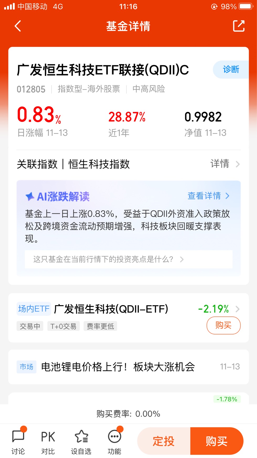 便捷性与成本:作为QDII基金,它允许投资者通过熟悉的A股账户,直接用人民币投资港股市场,省去了开立港股通账户的50万资金门槛和换汇的麻烦。C类份额通常免申购费,主要收取销售服务费,对计划进行短期操作或定投的投资者来说成本更具优势。