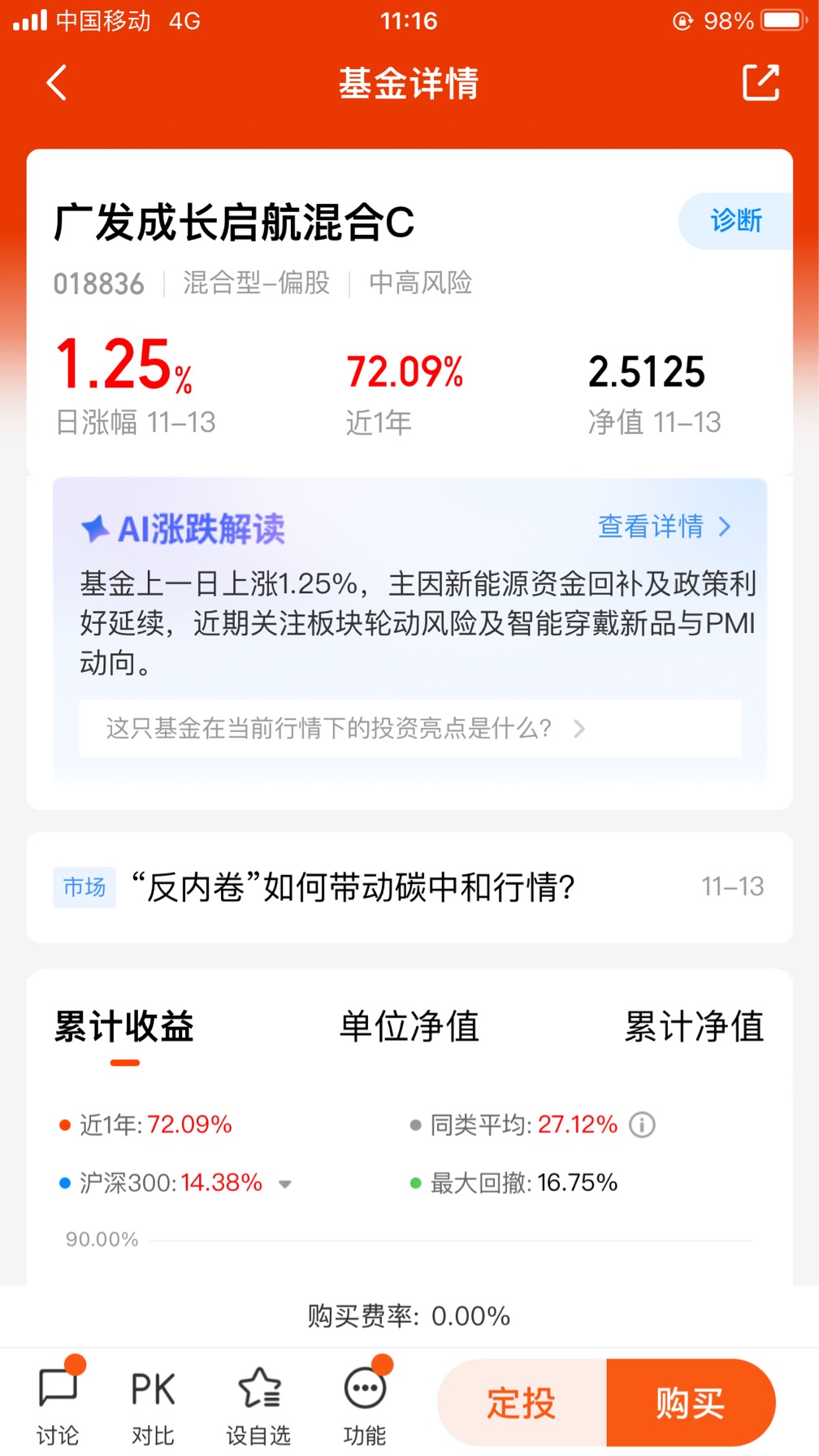 业绩与风险表现:根据截至2025年11月13日的数据,该基金今年以来上涨28.77%,近一年年化收益率达28.87%,表现优异。但需要注意的是,其波动性和回撤也较大,这要求投资者具备一定的风险承受能力。