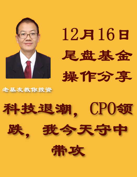 12月16日A股三大指数集体明显回调,截止我发文时,上证指数跌1.22%,深证成指跌1.88%,创业板指跌2.35%。A股总成交量11396亿,相比上一个交易日同期缩量589亿,估计全天量能在1.7万亿左右。两市有917只个股上涨,有4467家下跌。零售、免税店、网约车、食品加工、乳业、预制菜、教育等涨幅靠前,贵金属、影视院线、海南自贸区、电源设备、BC电池、可控核聚变、培育钻石等跌幅靠前。今天社保重仓跌1.37%,养老金重仓跌1.57%,基金重仓跌1.96%,证券跌0.44%,保险跌0.79%,银行跌0.3%。今天国家队暂时没有明显拉大金融护盘,社保养老金公募集体离场。因担心AI泡沫等问题,美股科技持续走弱。这处情绪也传导至A股。我认为这种担忧情绪是短暂的,A股中长期趋势仍是健康向上的,我今天进攻与防守同时进行,继续加仓恒生科技、价值优选、固态电池、港股科技、通信设备、天弘科创综指增强和纯债基金。