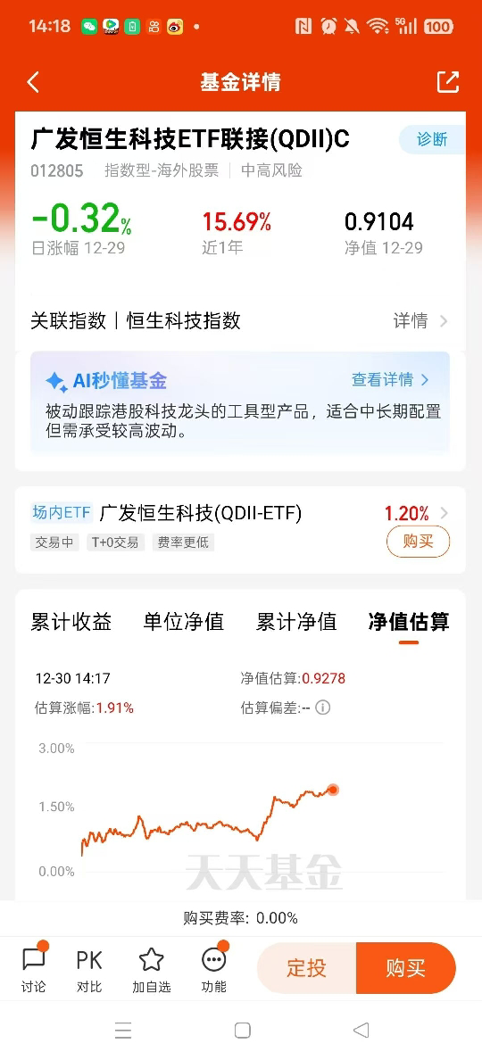 目前看快两个点了,低位埋伏的恒生科技终于看到起色了