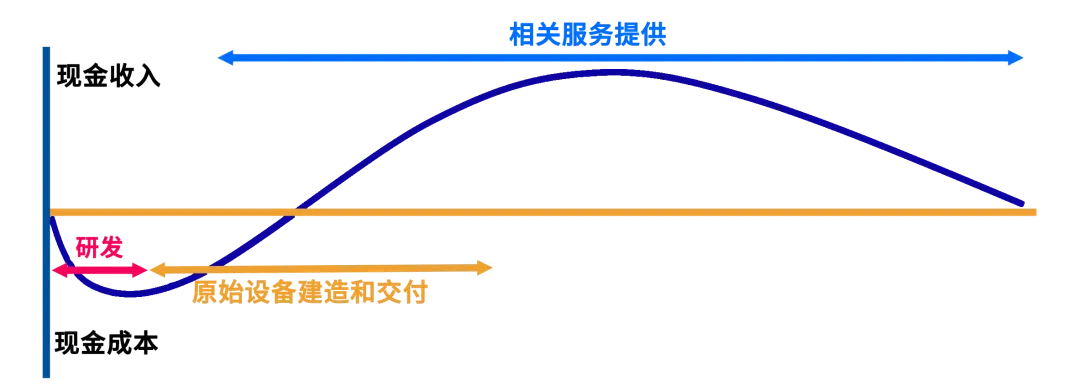 根据中国银河证券研究院数据,这条产业链的价值分布从成本视角来看,呈现“后端主导”特征:设计研发占全生命周期价值的10%,加工制造占40%,运营维修占50%。可见,后市场服务才是形成主要回报的区间,而这个阶段需要耐心等待其慢慢实现。