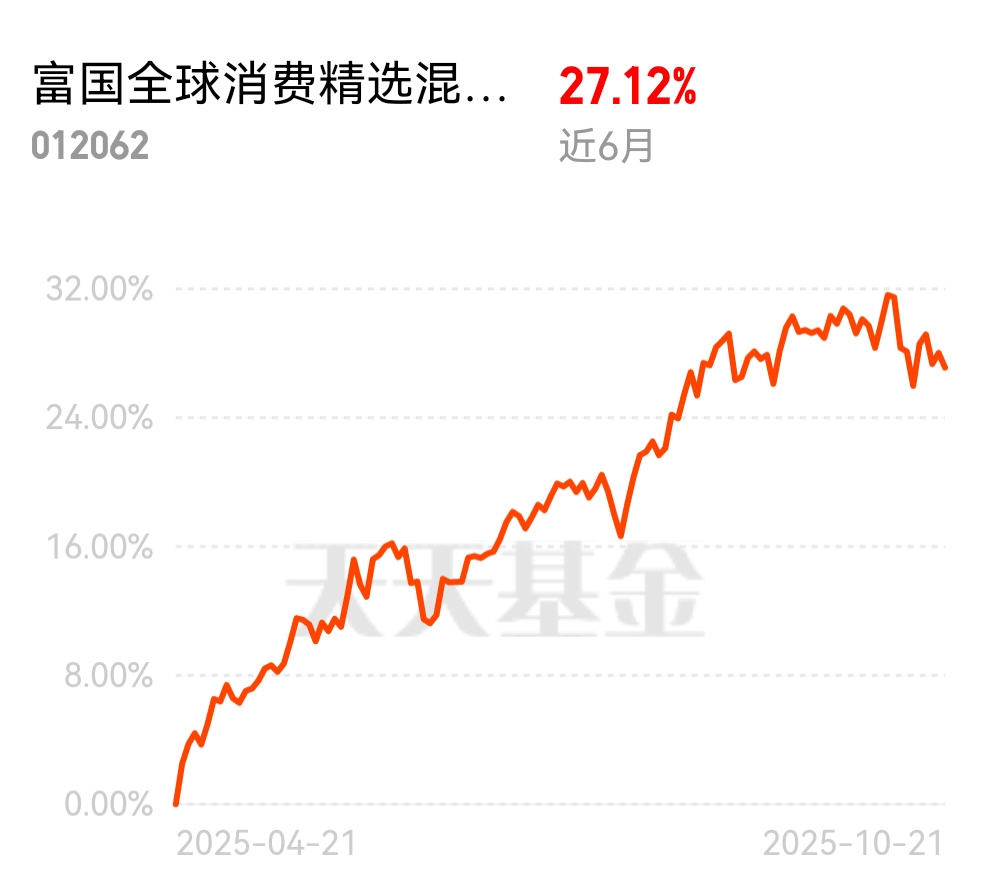 新消费长远势头足,下半年有盼头!富国全球消费精选混合 C 近六月 27.12%、近一年 70.54%,重仓老铺黄金、腾讯,超能赚!