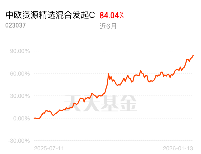 有色金属板块市场情绪火爆,各类资源品价格纷纷走高。中欧资源精选混合发起 C 近 6 月 84.04%,在周期资源主动基金中表现靠前,铜、铝产业链配置比例超同类,反弹阶段收益更猛。
