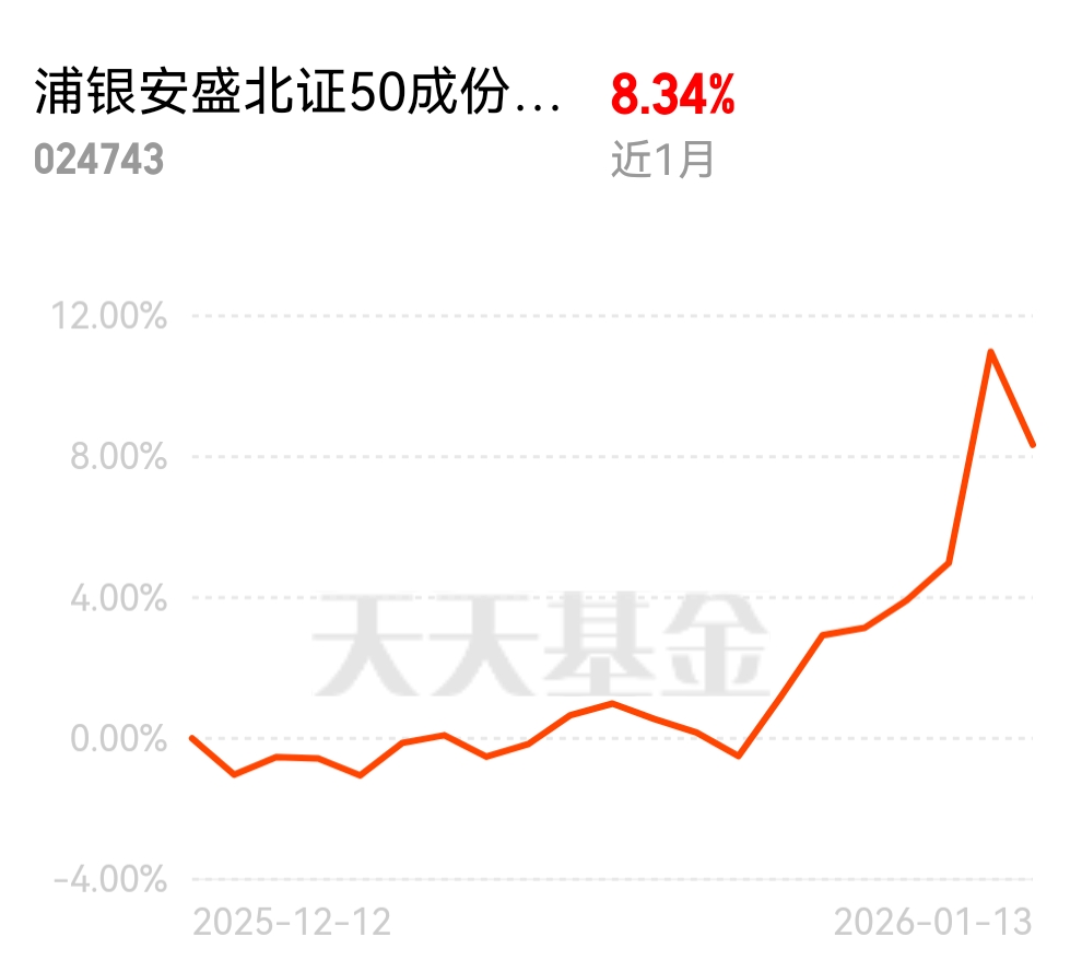 想冲北证30cm高弹性?浦银安盛北证50跟踪紧密超额涨,费率低不限购,波段操作超方便$浦银安盛北证50成份指数A$