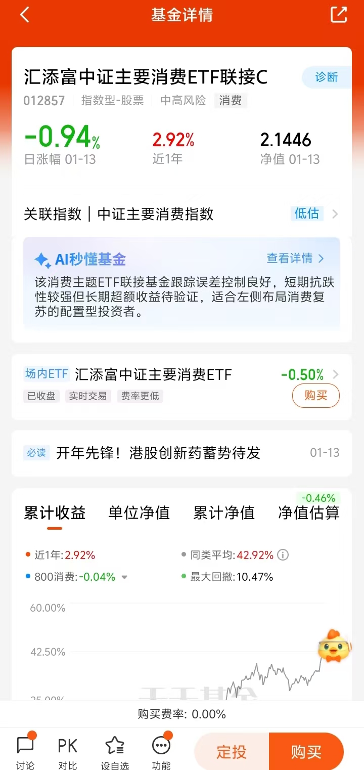 $汇添富中证主要消费ETF联接C(OTCFUND|012857)$