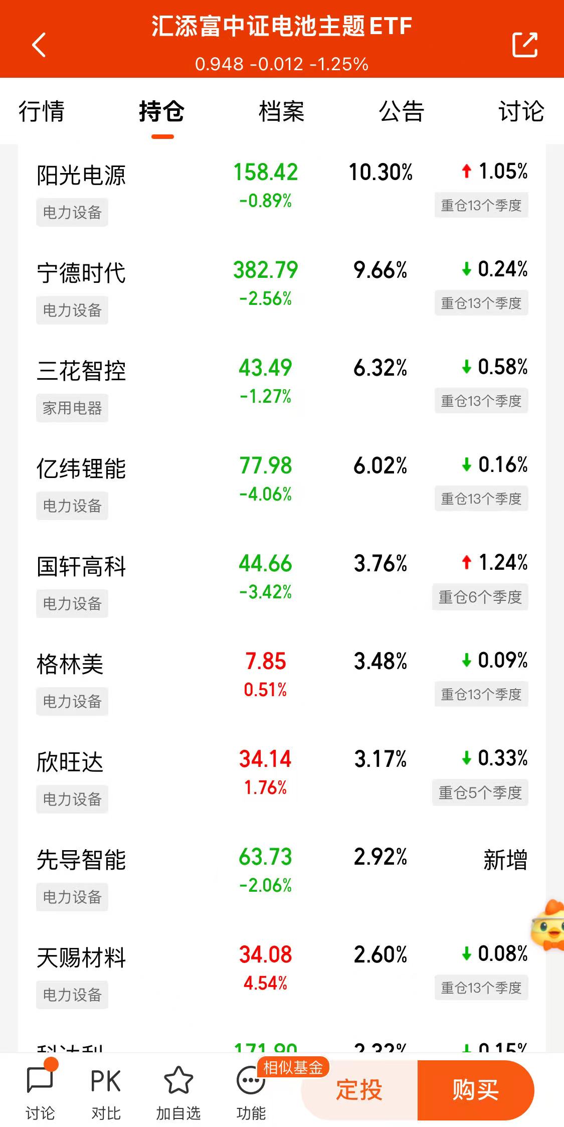 汇添富基金明星基金经理董瑾女士紧密跟踪中证电池主题指数(931719)的汇添富中证电池主题ETF发起式联接(A:012862;C:012863;D:015808)选取业务涉及动力电池、储能电池、消费电子电池以及相关产业链上下游的上市公司证券作为指数样本,覆盖了市场面常见的电池品种,一键布局储能、动力、消费电子、电芯生产、电池材料等细分领域,更侧重于储能配置,“电池纯度”高。前十大重仓股包括阳光电源、宁德时代、三花智控、亿纬锂能、国轩高科、格林美等锂电池全产业链龙头企业,市场潜力巨大。汇添富中证电池主题ETF发起式联接A(012862)“近1年”阶段涨幅高达91.75%,远超沪深300指数的35.04%,在3030只同类基金中排名高居第552位。