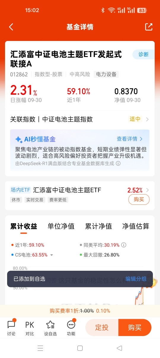 从配置价值看,$汇添富中证电池主题ETF发起式联接C$ 的核心优势在于全产业链覆盖的均衡性。其跟踪的中证电池主题指数不仅涵盖了盈利持续修复的电池制造企业,还纳入了负极、结构件等业绩高增的材料标的,其中负极材料环节2025Q2归母净利润同比增长37.81%,结构件环节同比增长22.05% 。在盈利修复与需求放量的双重驱动下,四季度电池板块估值有望从底部持续回升,该基金通过指数化投资方式,可帮助投资者全面捕捉行业复苏带来的投资机会。