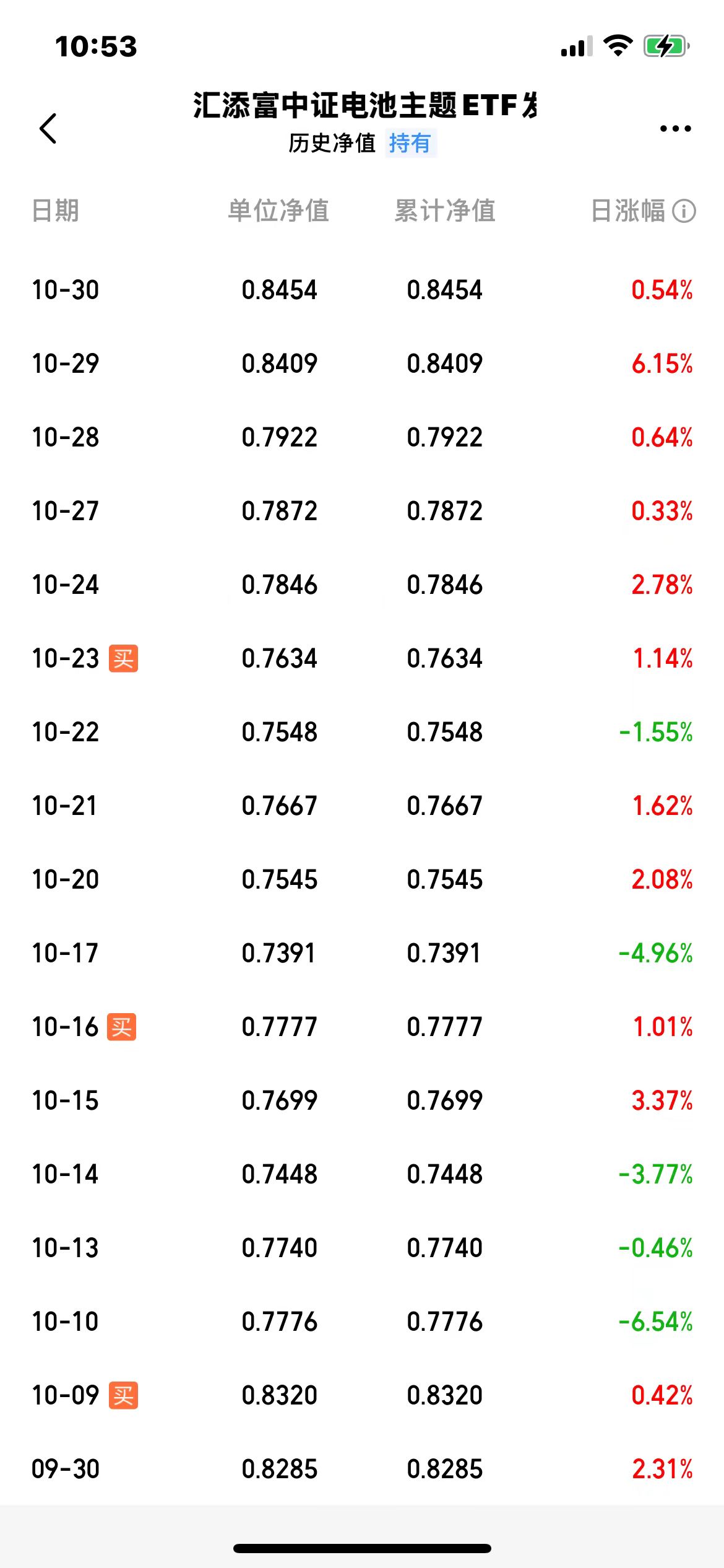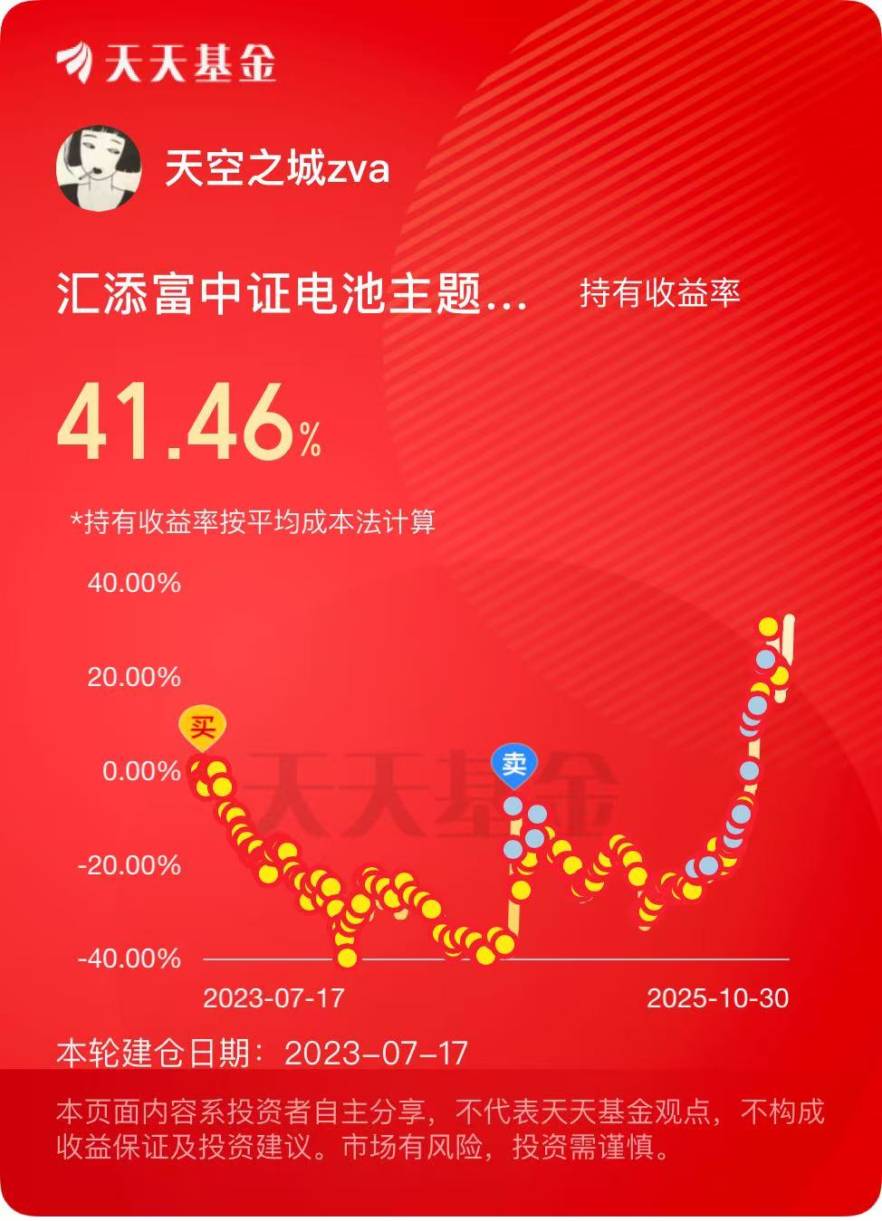 电池板块正在走出基本面低谷,估值回归也是很自然的事;继续看好电池方向。接下来定投不止!