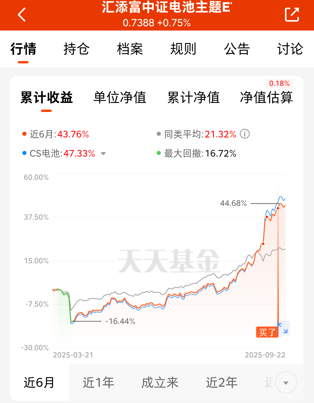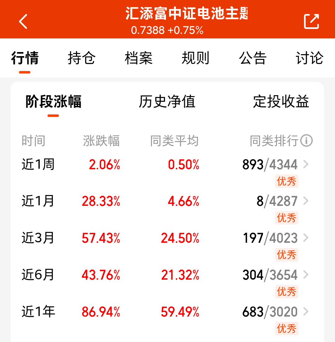 今年是科技牛年,科技板块持续上涨,但是继科技板块之后的固态电池,好比第二个CPO,在政策与技术的双轮驱动下,固态电池板块涨势爆发,而且这并不是昙花一现呢。全球储能需求超预期,订单爆满,而且商用车板块爆发,估算26年的需求增量在50gwh左右,更加验证了电池板块的行情呢。我可不想错过行情,我上车了$汇添富中证电池主题ETF发起式联接C(OTCFUND|012863)$近一个月上涨28.33%,近一年上涨86.94%,不仅业绩优秀,费率还是最低的。要选就要选这种,性价比高,省到就是赚到呢。我今天也要继续加仓,加大仓位。
