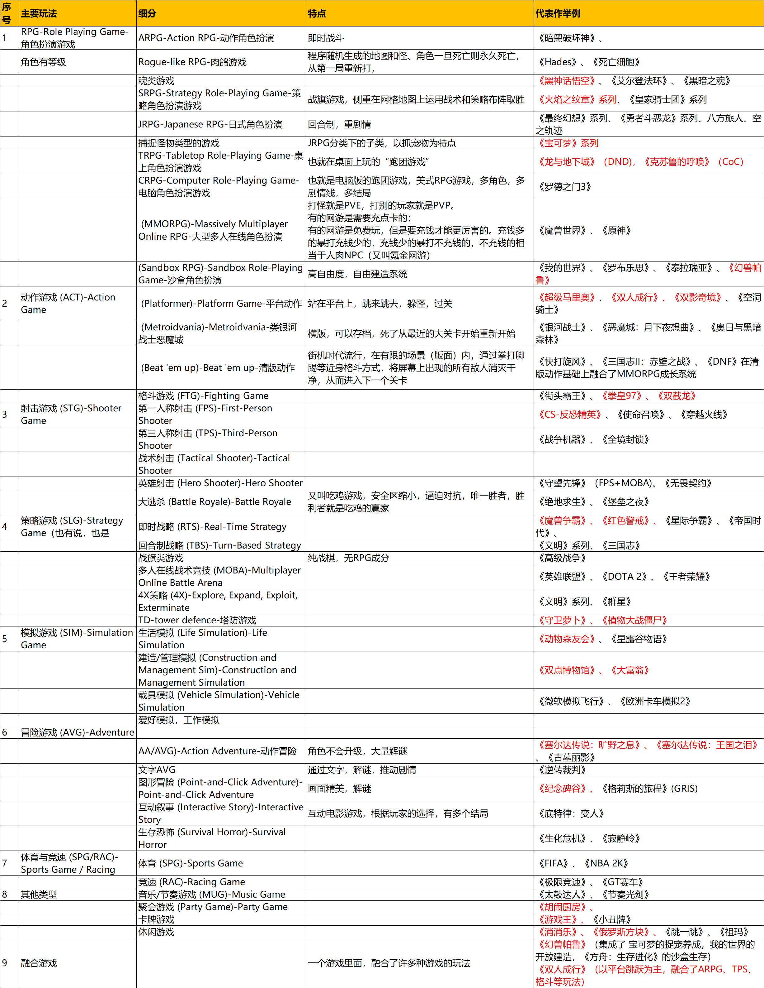 我这几天,我稍微花了点精力,整理出了目前市面上常见的游戏玩法,以及各个玩法的代表作。(图2)