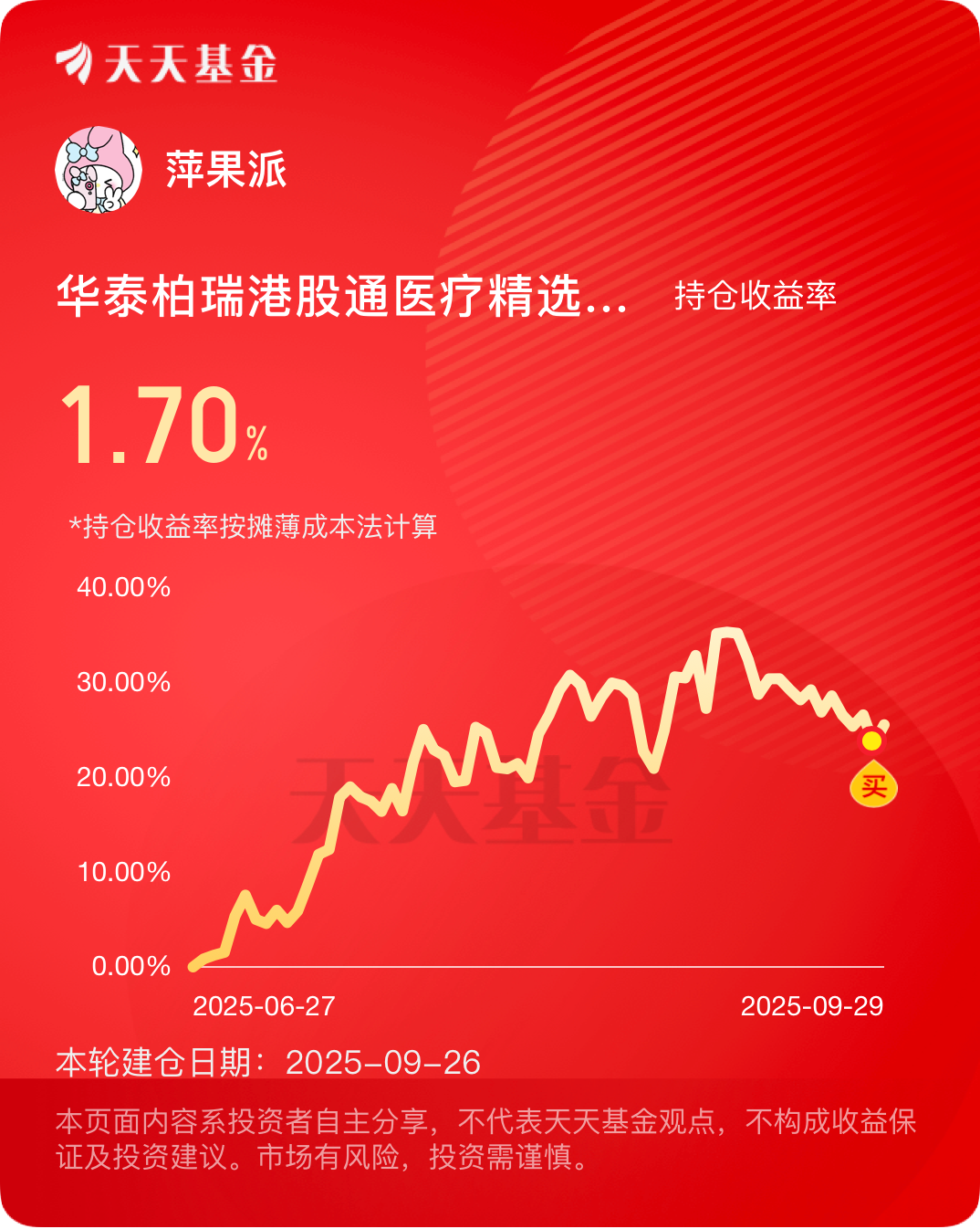今天华泰港股通医疗涨1.60%,三个月25.54%,完全投向港股的优势明显,创新
