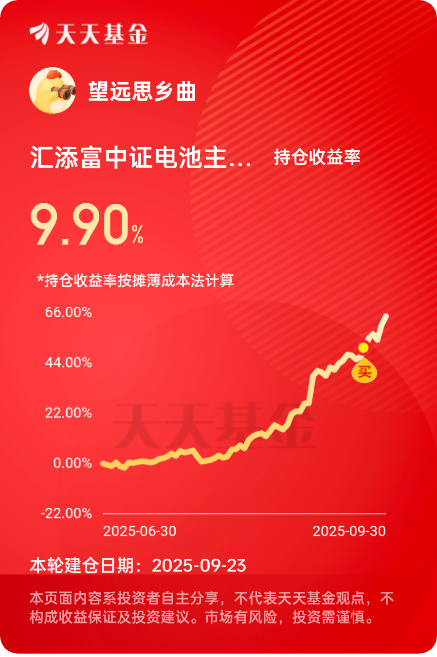 在储能政策持续加码与固态电池技术突破的双重驱动下,电池板块已具备明确的反转逻辑与长期增长潜力。$汇添富中证电池主题ETF发起式联接C$ 凭借全产业链覆盖的指数标的、低成本的费率结构、专业的管理能力,成为普通投资者参与行业行情的优质工具。