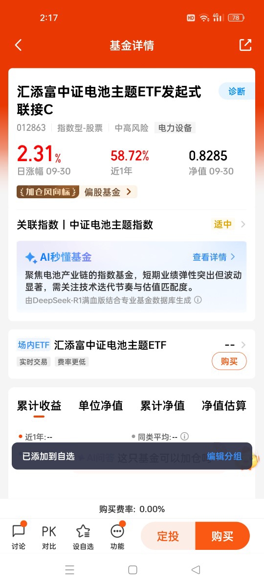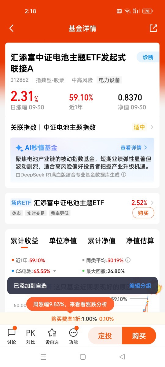在 “反内卷” 盈利反转、新能源车渗透率突破、固态电池技术落地、储能政策加码的四重利好共振下,电池板块四季度的投资逻辑愈发清晰。$汇添富中证电池主题ETF发起式联接C$ 凭借全产业链覆盖的指数标的、低成本的费率结构、专业的管理能力,成为普通投资者参与行业行情的优质工具。对于看好新能源赛道长期发展的投资者,四季度继续持有或通过定投加仓该基金,既能把握行业短期修复红利,又能分享技术迭代与需求增长的长期价值,是布局电池板块的理性选择。