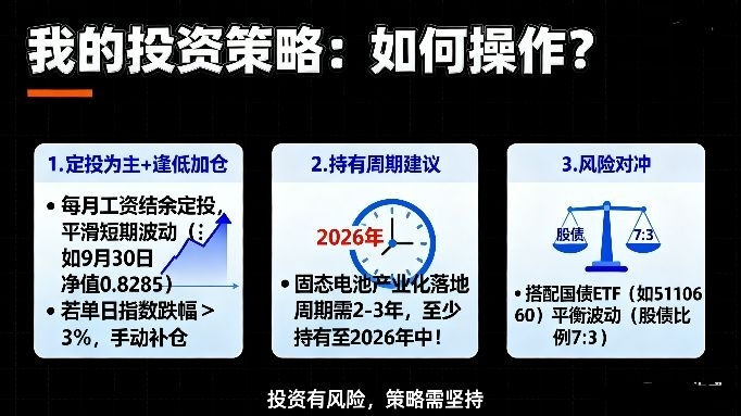 • 每月工资结余定投,平滑短期波动(如9月30日净值0.8285);