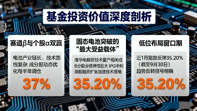 • 指数37%权重覆盖固态电池概念股,清华电解质技术若量产,相关成分股业绩弹性巨大。