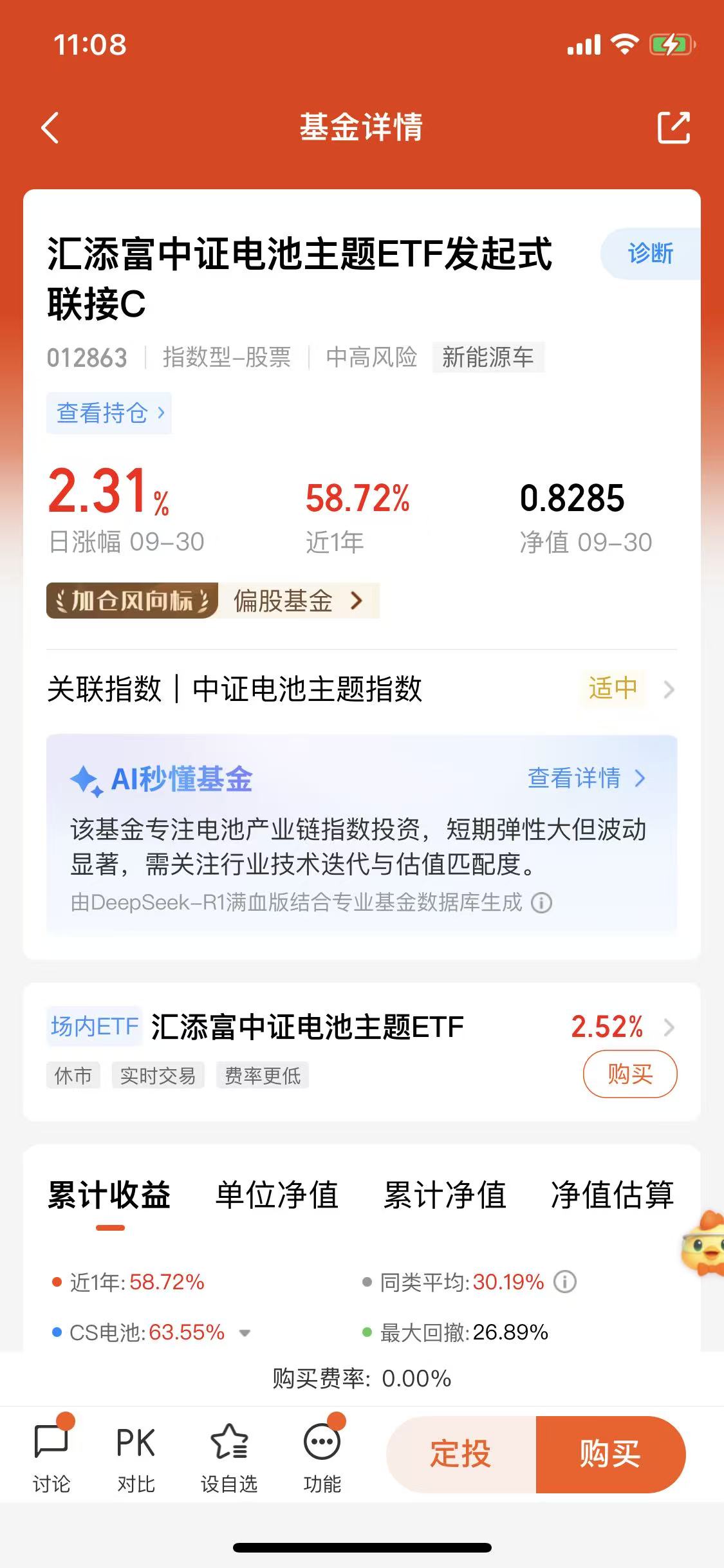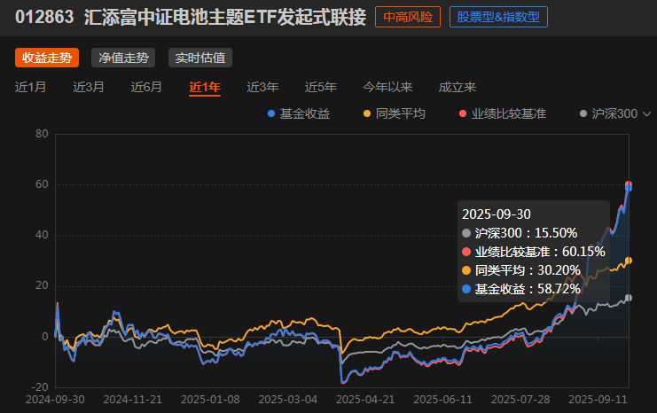 刚刚提到的汇添富中证电池主题ETF发起式联接C(012863)这只基金,它也是我这几年重点布局的基金。新能源赛道沉浮多年,如今在高质量发展和科技突破的大趋势下,电池领域重新站上聚光灯。而这只ETF联接基金,不只是简单跟踪指数,它背后接轨的是整个中证电池主题的生态体系,覆盖了动力电池、储能电池、上游锂资源等多个环节。对我来说,它比单买某只个股更加稳健,波动控制也更理性。