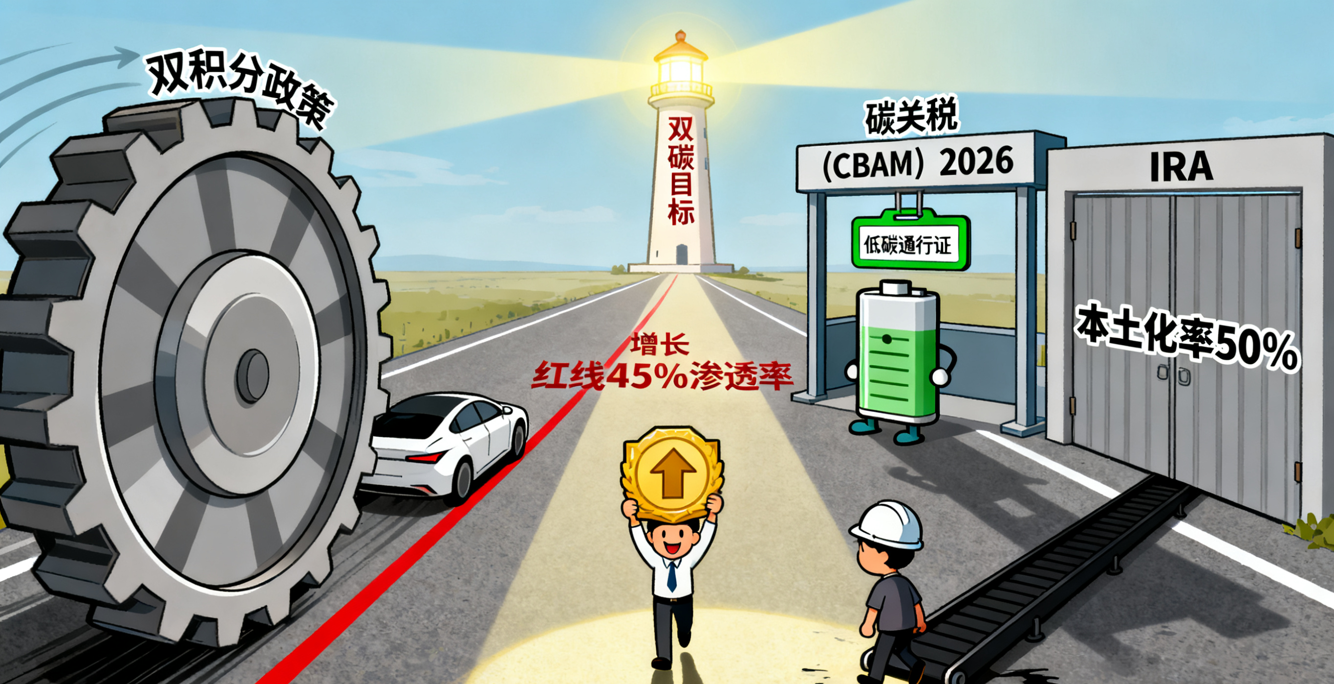 我国的新能源汽车补贴在2022年底退坡后,现在主要靠“双积分政策”托底;欧洲的“碳关税”(CBAM)从2026年开始正式征收,对电池的低碳要求更高;美国的“通胀削减法案”(IRA)要求电池原材料本土化率达到50%才能享受补贴。这些政策一方面给行业划定了“增长红线”(比如我国2030年新能源汽车渗透率要达到45%),另一方面也提高了准入门槛。对企业来说,能符合全球政策要求的(比如低碳制造、本土化供应链),估值会有溢价;跟不上政策的,可能被淘汰。