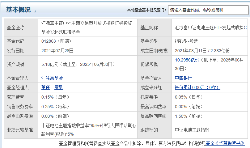 四、汇添富中证电池主题ETF发起式联接C(012863)深度评测$汇添富中证电池主题ETF发起式联接C(OTCFUND|012863)$