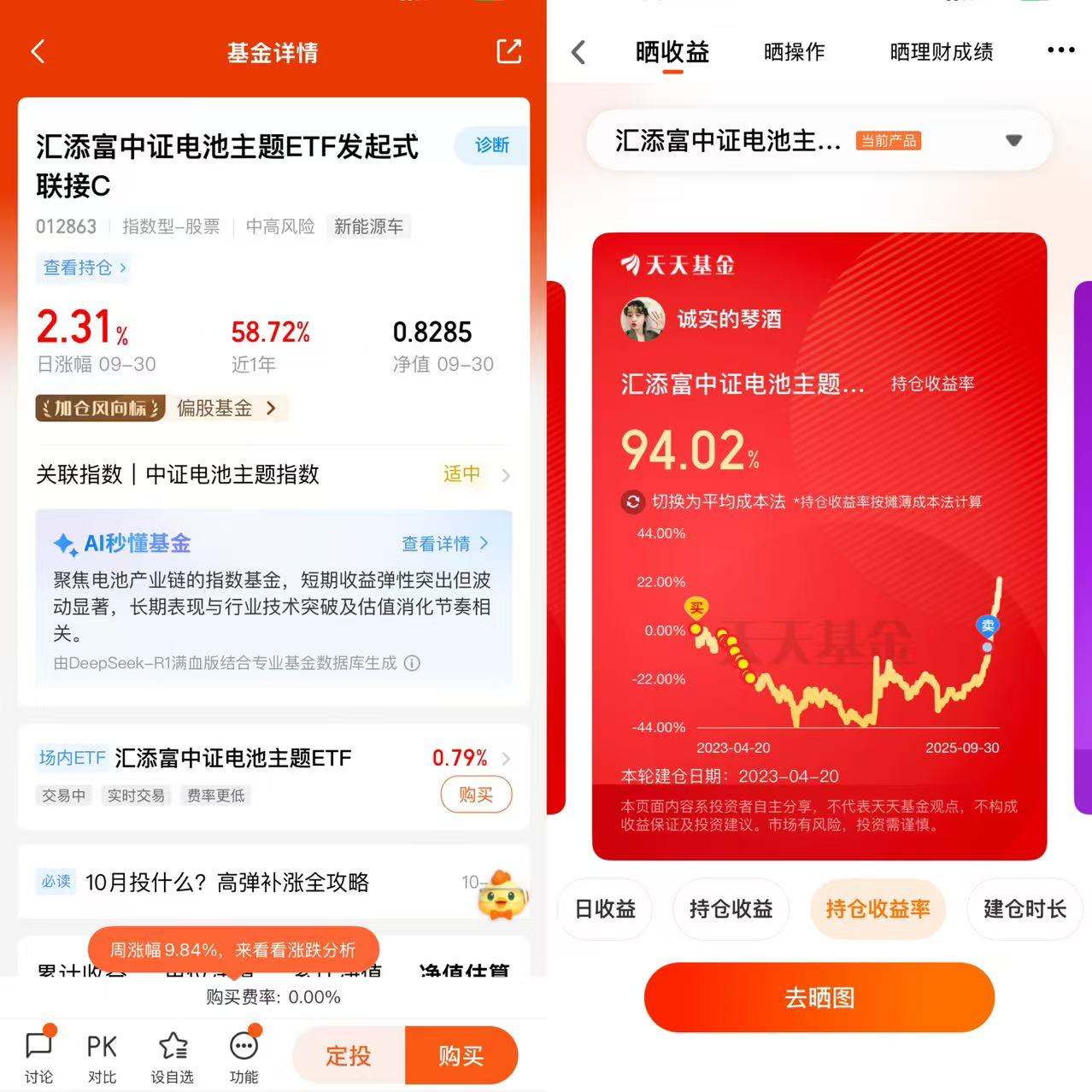 汇添富中证电池主题ETF联接C基金的比较优势:相比其他电池主题基金,汇添富中证电池主题ETF联接C基金费率优势明显(总费率约0.45%/年,低于行业平均水平),跟踪误差控制严格(年跟踪误差不超过4%),且投资策略稳健(采用完全复制法跟踪指数)。同时,基金规模适中(7.55亿元),关联ETF流动性充足(日均成交额超6亿元),能够满足大多数投资者的申赎需求。