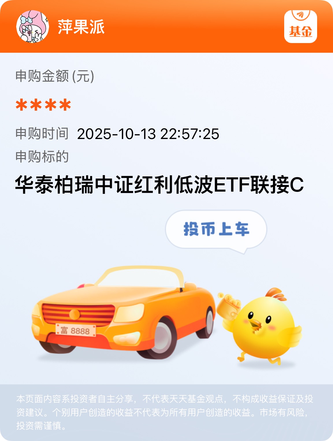看到$华泰柏瑞中证红利低波ETF联接C$ 今天收涨0.56%,在目前行情下算稳健了。准备按季节效应布局,11-12月红利策略往往有不错表现。#全球市场深夜暴跌!纳指重挫超3%# #大消费板块逆市拉升!行情能否持续?# #沪指盘中突破3900点!什么信号?#