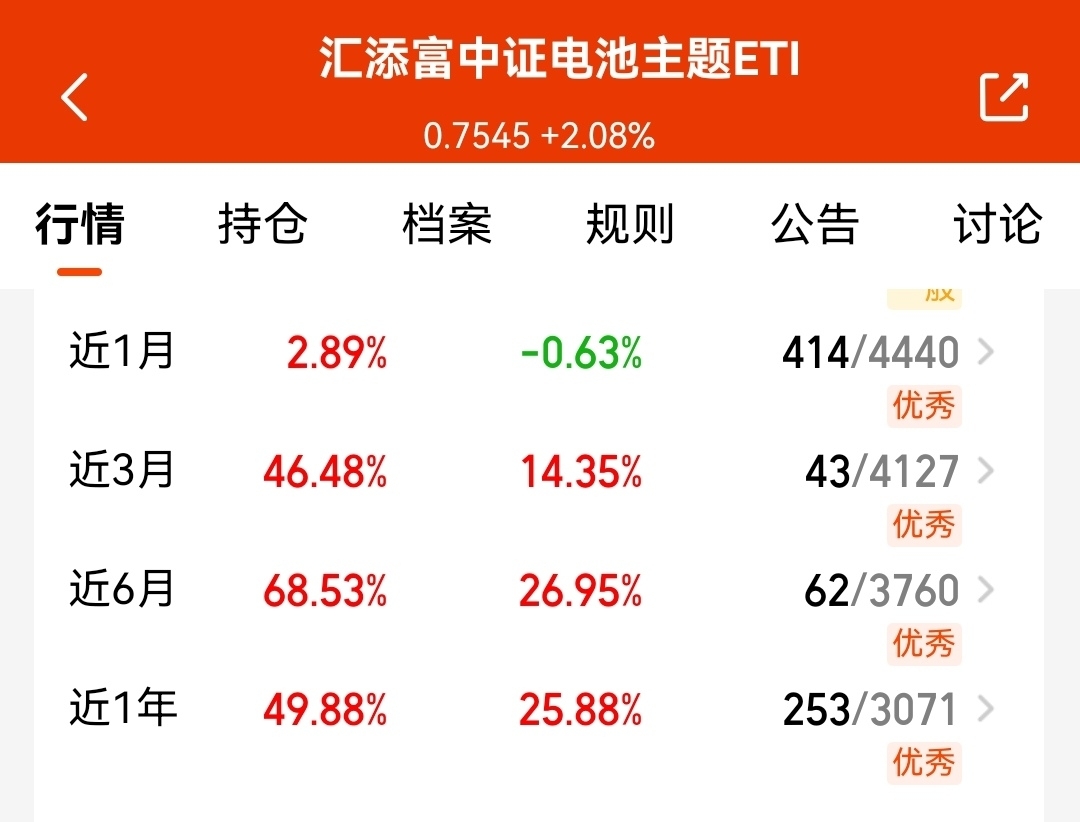 $汇添富中证电池主题ETF发起式联接C$ (012863)可以一键把握电池产业链优质龙头股,近三个月上涨超46%,近六个月上涨超68%,业绩表现优秀,而且汇添富中证电池费率最低,性价比高,我今天先买一笔。