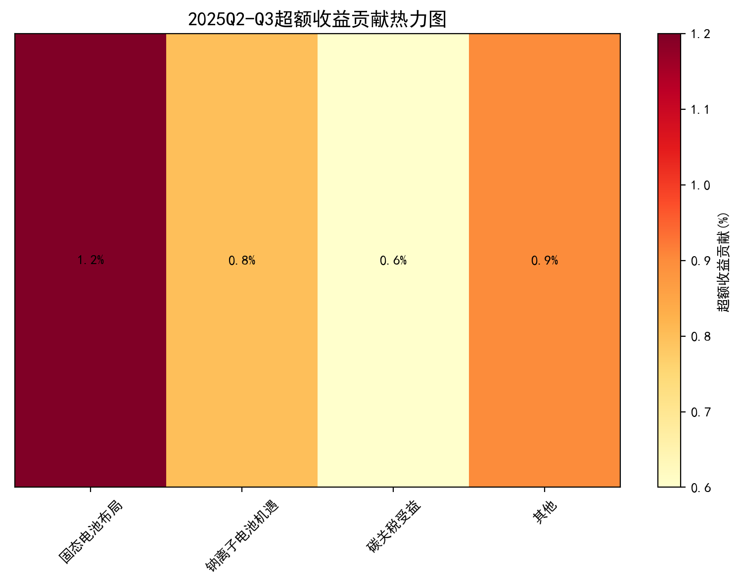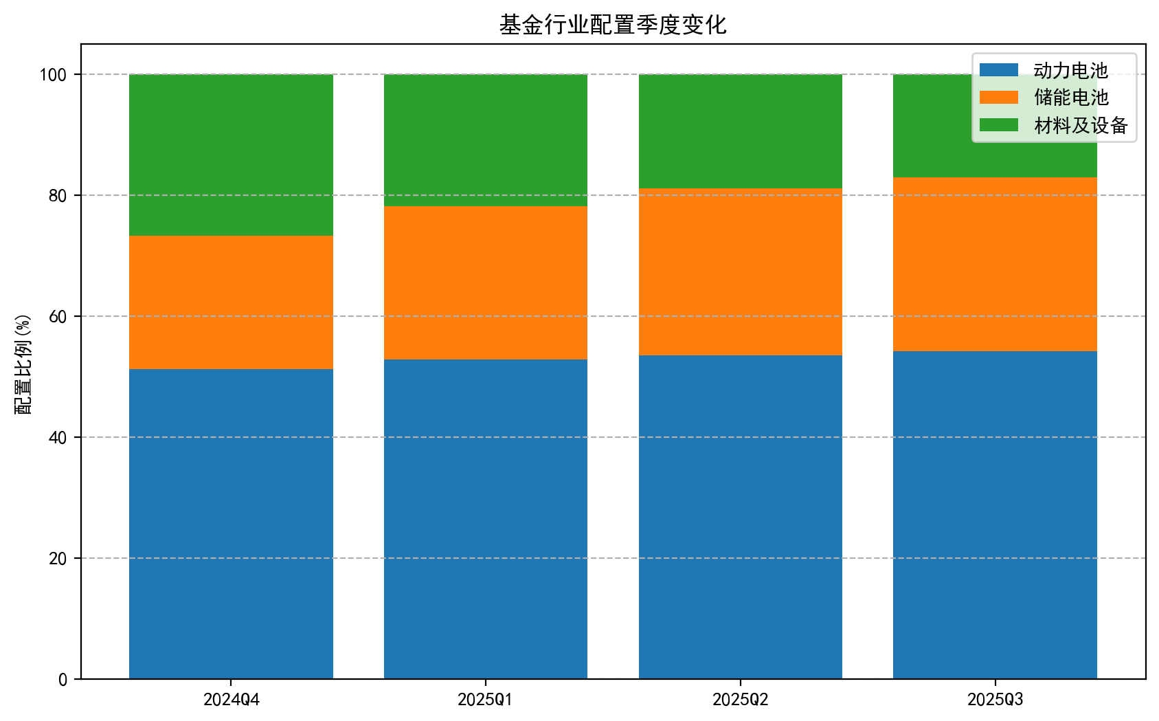 储能电池配置呈现加速增长态势,从2024年末的22.1%提升至当前水平,与中国储能锂电池出货量爆发式增长相呼应——2025年预计达364GWh,同比增长40.5%。区域分布方面,基金超配华南地区企业(占比58.3%),与产业集聚特征相符(广东、江苏产业链企业分布最多)。这种配置既抓住了宁德时代(市占率42.35%)、比亚迪(20.85%)等头部企业的成长红利,也通过配置国轩高科(环比增长36.7%)、瑞浦兰钧等第二梯队企业捕捉行业分化机会。