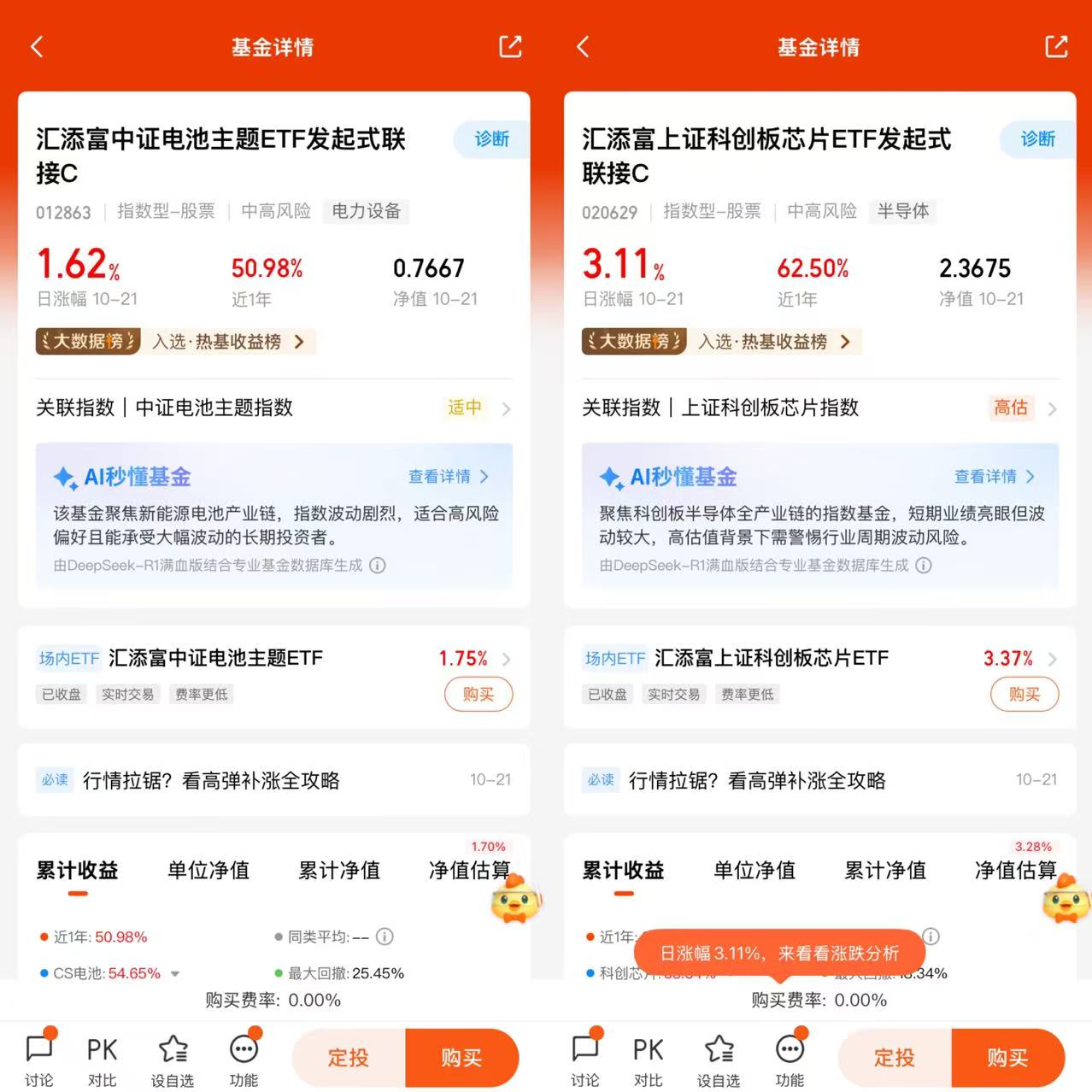 $汇添富中证电池主题ETF发起式联接C(OTCFUND|012863)$、$汇添富上证科创板芯片ETF发起式联接C(OTCFUND|020629)$