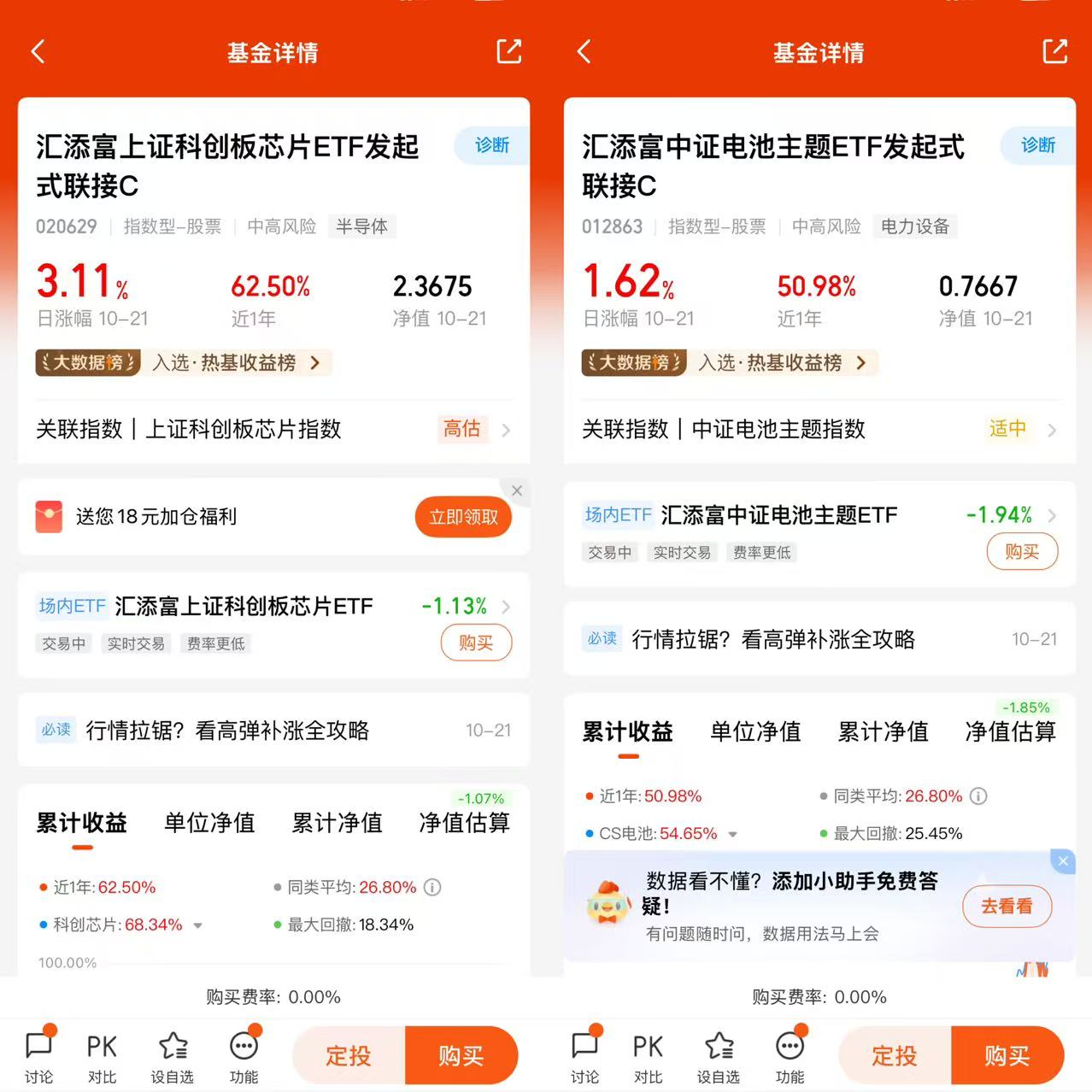 $汇添富中证电池主题ETF发起式联接C(OTCFUND|012863)$、$汇添富上证科创板芯片ETF发起式联接C(OTCFUND|020629)$