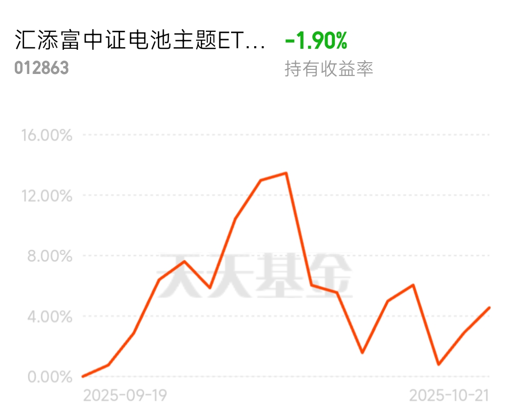 看好电池赛道潜力发展趋势,连涨行情,回调该补就补。$汇添富中证电池主题ETF发起式联接C$