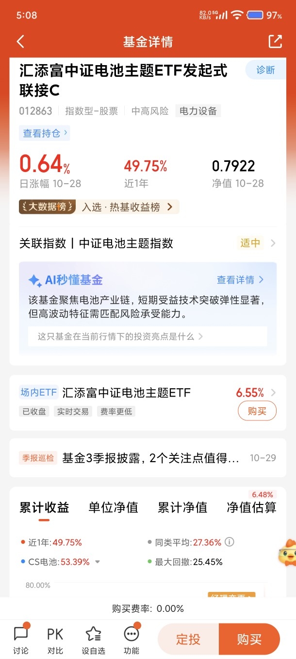$汇添富中证电池主题ETF发起式联接C$ #晒实盘# #晒收益#