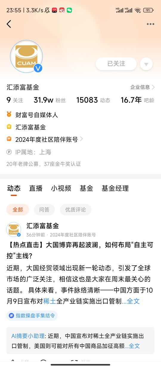 正如查理·芒格所说:“宏观是我们必须接受的,微观才是我们可以有所作为的。”在美联储降息周期与AI革命的叠加期,与其纠结于短期波动,不如深耕产业趋势。当你在深夜刷完最后一份研报时,或许会发现:真正的理财自由,不在于战胜市场,而在于战胜内心的焦虑。@汇添富基金 @默默的小金库1 @高贵典雅的远青2