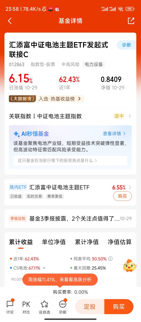 #汇财友道# #谁玩理财还内耗呢# $汇添富中证电池主题ETF发起式联接C$