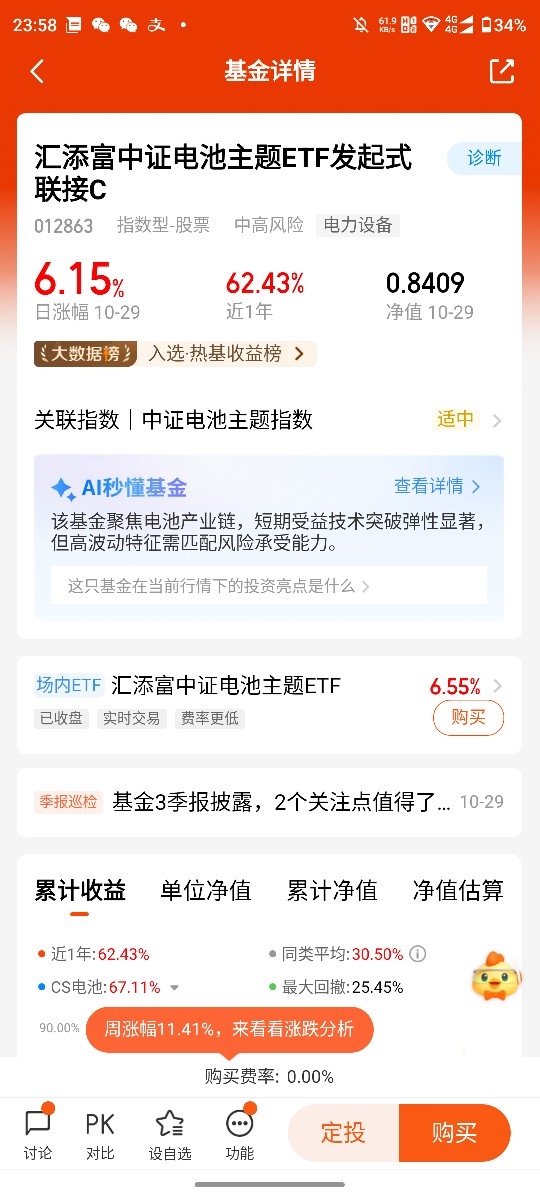 #汇财友道# #谁玩理财还内耗呢# $汇添富中证电池主题ETF发起式联接C$