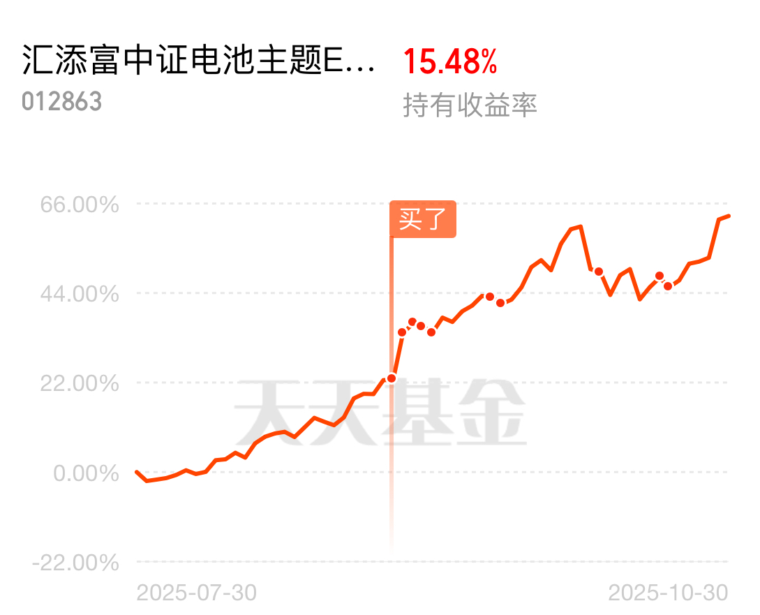 电池这波真给力,都6连涨了,今天也继续红,还好我一直逢跌买。$汇添富中证电池主题