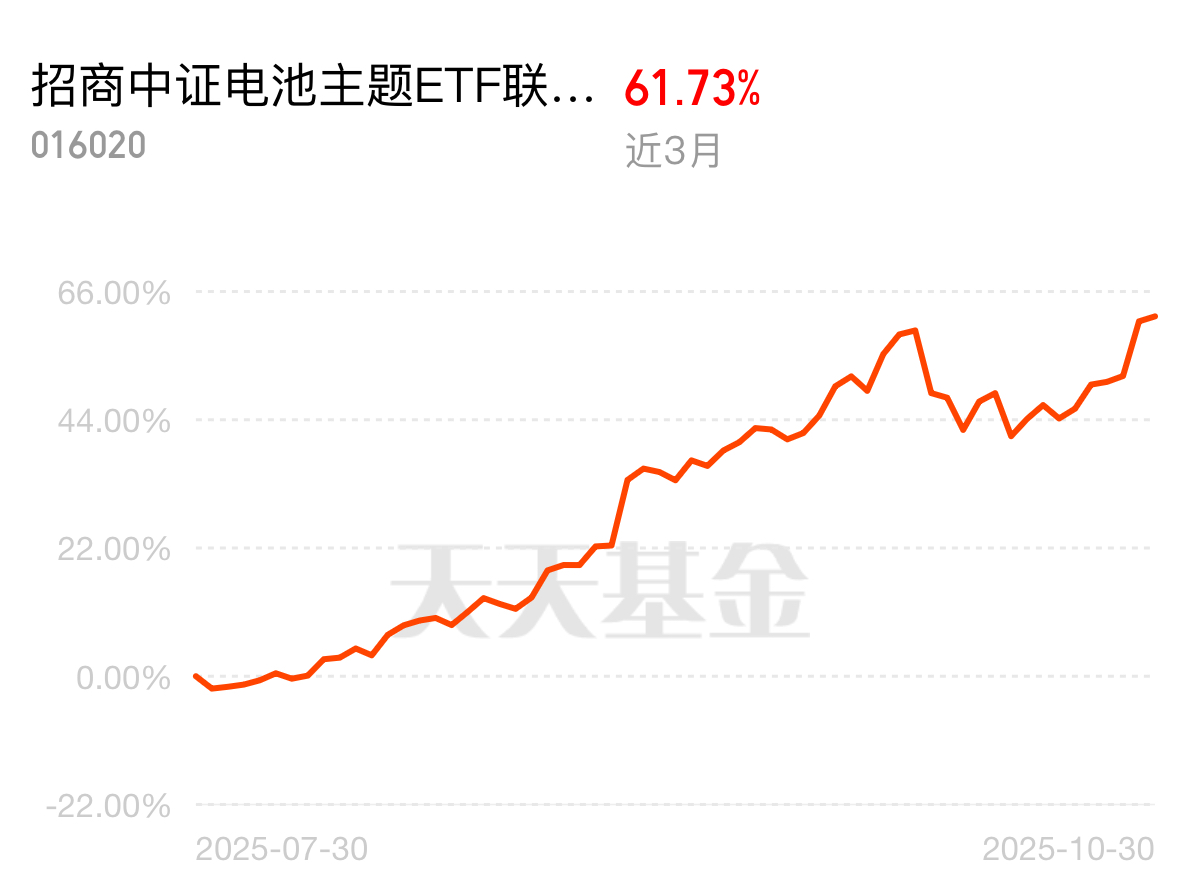 现在电池板块真是站在风口上,不管是动力电池还是储能电池,需求都在爆发,资金也一个劲往里涌。想搭车的可以看看招商中证电池主题ETF联接C,近6个月业绩有81.92%,跟着行业走得很稳。