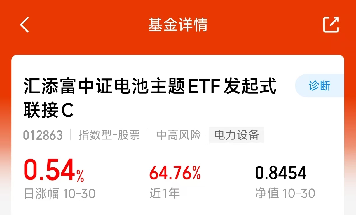 今天早盘预估又涨了3%!$汇添富中证电池主题ETF发起式联接C$(012863)最近真是挡不住。为啥它这么活跃?因为它一把抓住了新能源领域的几个重要公司——宁德时代、阳光电源、亿纬锂能、先导智能,覆盖得很全面。你看近三个月涨了62%,近半年更是超过82%,在同类里面排在前头。尤其是它里面阳光电源的占比比其他电池指数都高,所以波动起来弹性更明显,近期涨幅在同类里也是数一数二的。再加上费率是同类里比较低的,确实适合关注电池领域机会的朋友。新能源周期在好转,这种聚焦电池全链条的基金,表现起来就更带劲#能源金属概念狂飙!锂电大周期来了?#