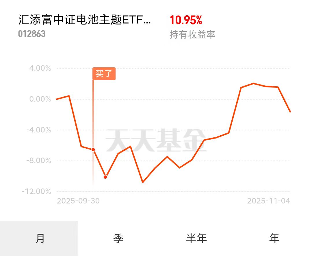 科技是主线,在选择主线的同时也要跟上热门赛道。今年年电池行业营收、净利润显著好转,困境反转吸引资金“高切低”布局。储能需求超预期!新能源四大天王,王者归来!科技之后我就选电池!我选择了$汇添富中证电池主题ETF发起式联接C(OTCFUND|012863)$,目前收益率到了10.95%,他是跟踪CS电池931719.CSI,有25%的储能概念,而且他的持仓里比别的指数多了新能源四大天王之一的阳光电源,更有优势,他锐度高,弹性大,而且综合费率仅为0.45%,同类最低,持仓体验不错。