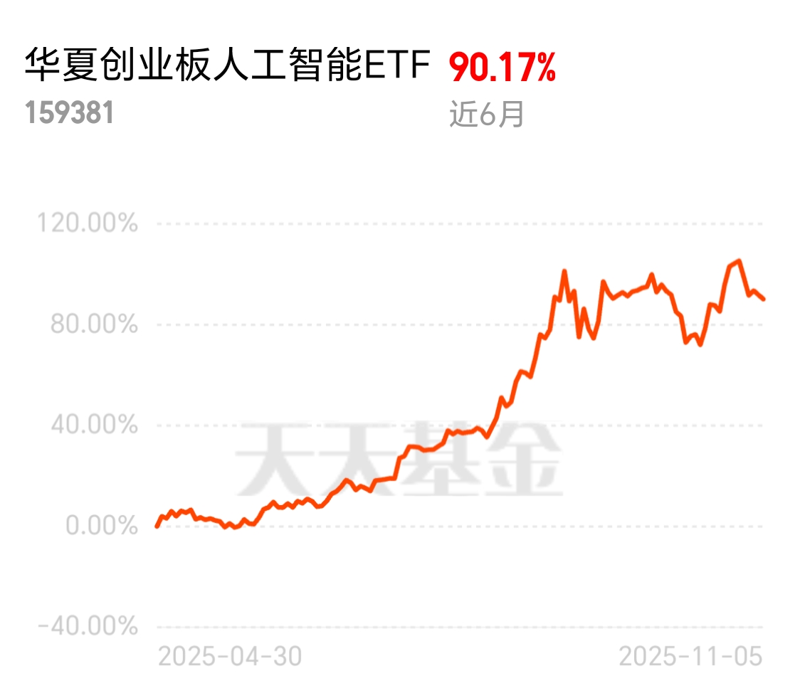 国产替代+自主可控的大背景下,人工智能的前景可观,场内近6个月的收益超90%,$华夏创业板人工智能ETF发起式联接C$成长空间大,布局也合理