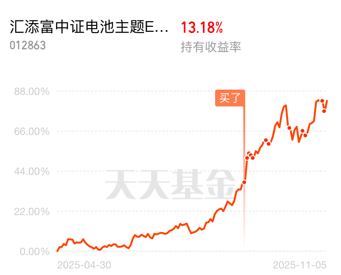 昨天全靠电池回了一大口血,今天又继续冲,看来逢跌买$汇添富中证电池主题ETF发起式联接C$ 是正确的。#A股低开高走!国际资本看好中国资产#