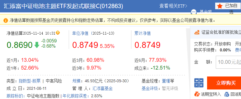 三、汇添富中证电池主题 ETF 发起式联接 C(012863)深度解析