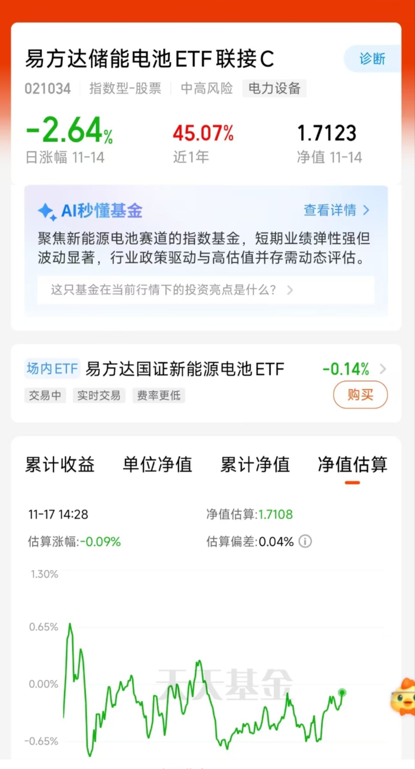 感觉新能源电池还有巨大上涨空间,果断加仓跟进!最近板块崛起涨得很可以,固态电池技术取得阶段性成果,加上全球能源转型刚需,未来需求只会越来越旺$易方达储能电池ETF联接C$